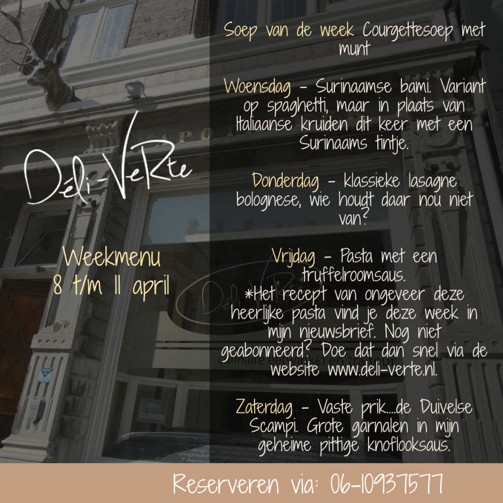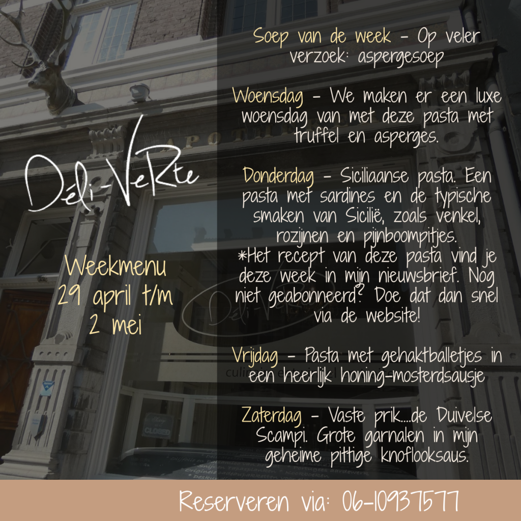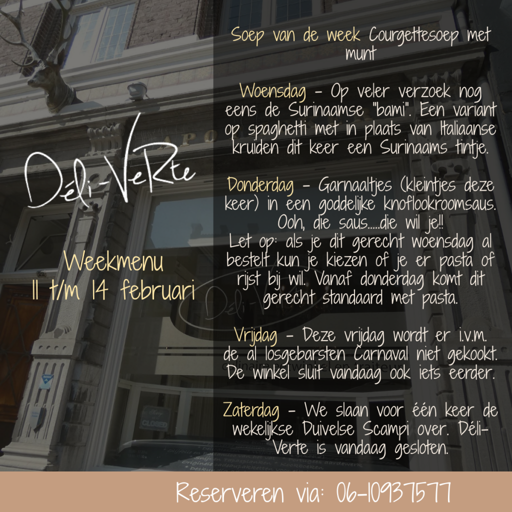 of via email op lekker-eten@deli-verte.nl